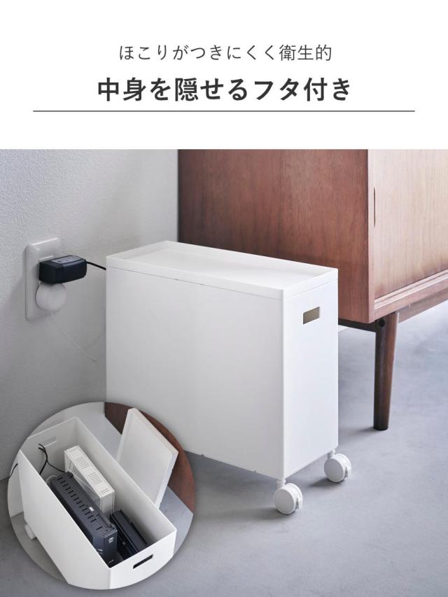 蓋付きなので、メガネやリモコンなどの一時置きとしてや、ルーターや電源タップなどを隠して収納できます。蓋があることでホコリがつきにくく、衛生的で食品ストックの収納にも安心です。