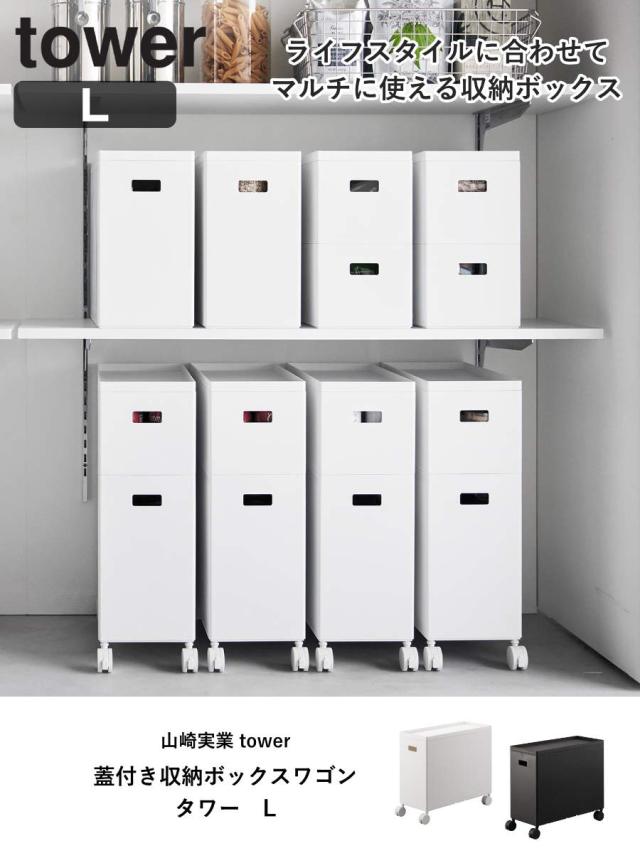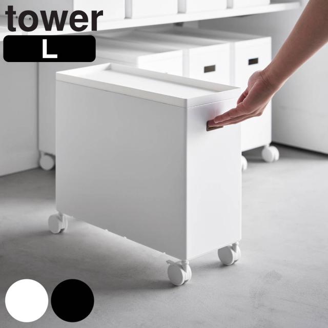 tower 山崎実業 蓋付き収納ボックスワゴン タワー L ( タワーシリーズ フタ付き収納ボックスワゴン ふた付き収納 収納ボックス Lサイズ ワゴン ボックス ケース キッチン収納 キッチン すきま収納)