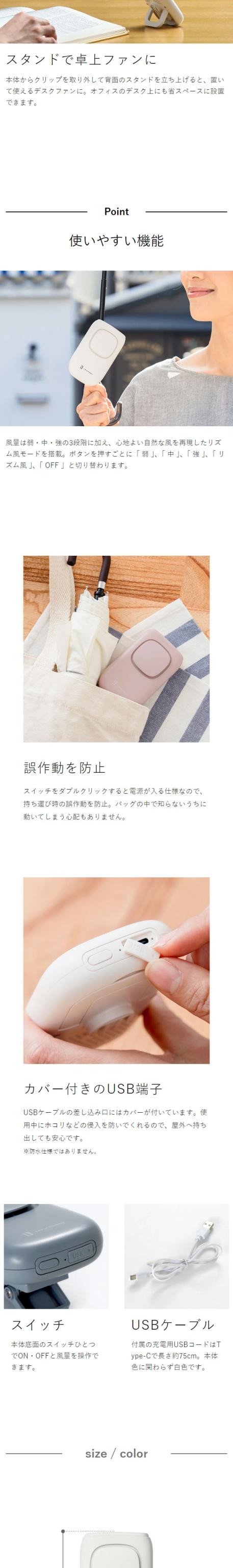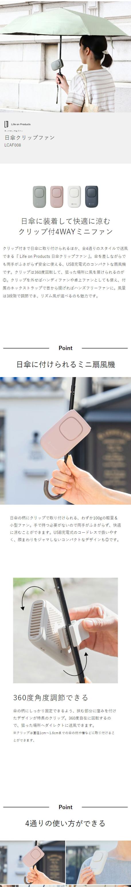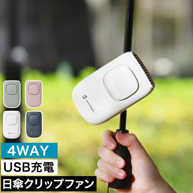 [ Life on Products 日傘クリップファン ]携帯扇風機 クリップ式 4WAY ハンディファン 小型扇風機 扇風機 クリップ 卓上 ハンディ 首かけ 軽量 USB 充電式 おしゃれ コンパクト 卓上扇風機 ミニ ライフオンプロダクツ LCAF008【送料無料】