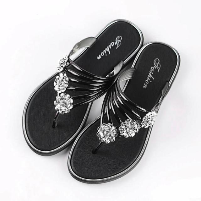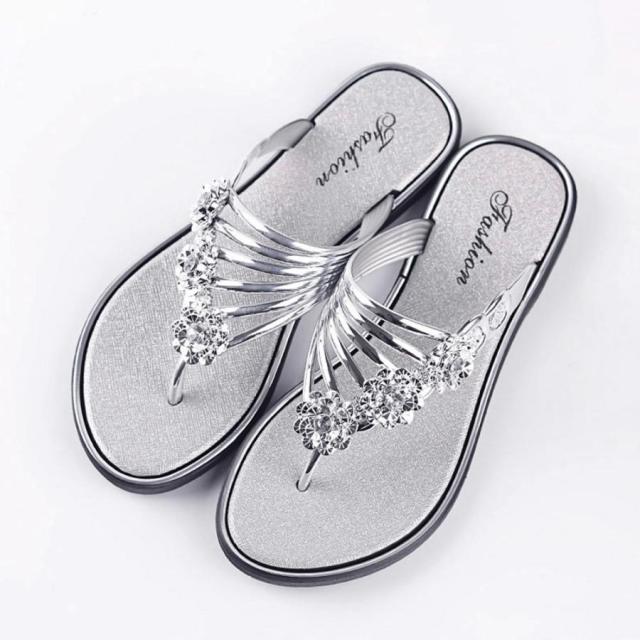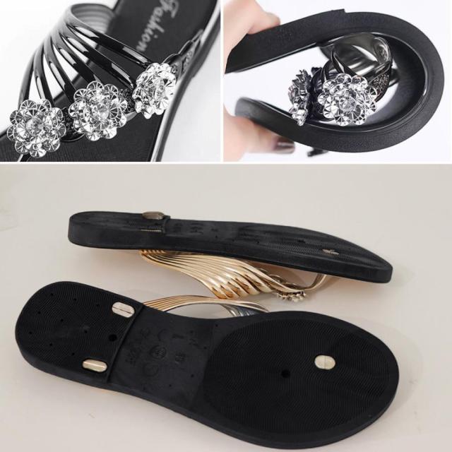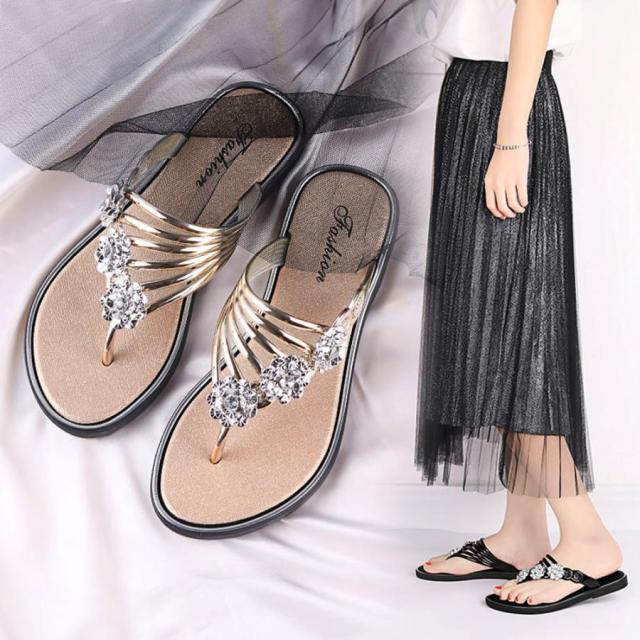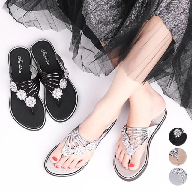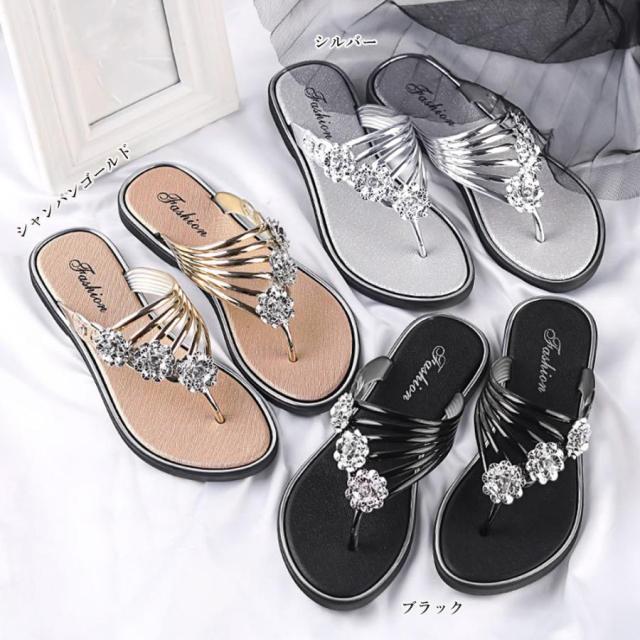 フラワートングサンダル レディース 夏靴 韓国ファッション フラットサンダル 歩きやすい ぺたんこストラップサンダル おしゃれ きらきら可愛い