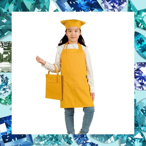 ?「可愛いデザインキッズエプロン」:お子様のために特別にデザインされたキュートなエプロン。鮮やかな明るい8色のカラーバリエーションで、お子様にぴったりです。 子供たちの自然な遊び心(例えば、シェフに扮するとか)に対応した独自のプリントで、家族で楽しむときも、一人で着るときも、楽しい気分にさせてくれます。 エプロンと三角巾と専用の収納袋は セットになっており、すべて丸角の柔らかいマジックテープが付いているので、子どもが一人でも着脱が安全で簡単です。お子さんを一人で活動させましょう
