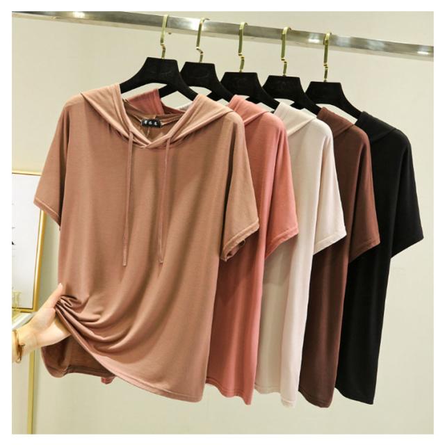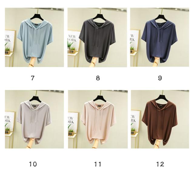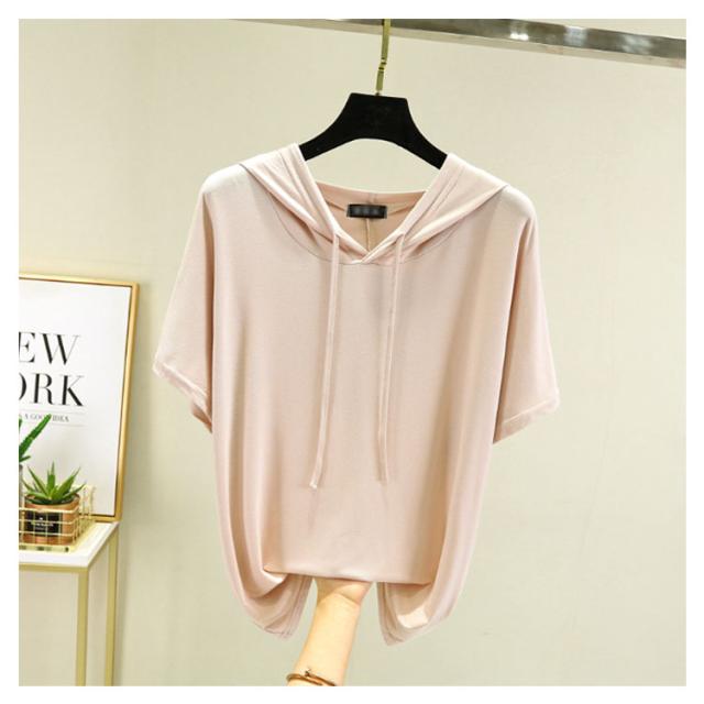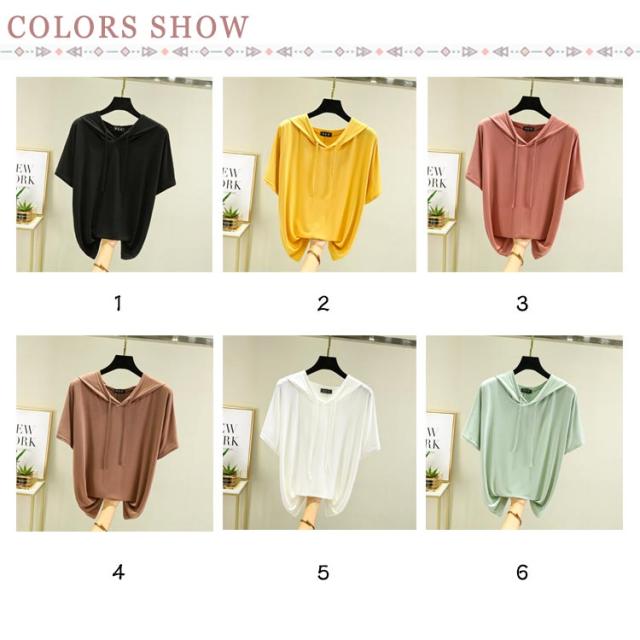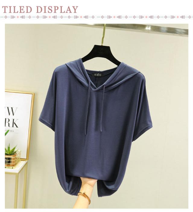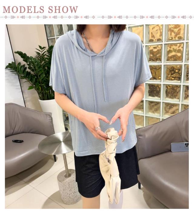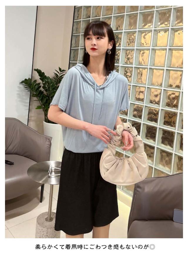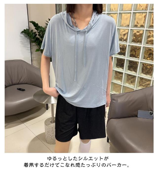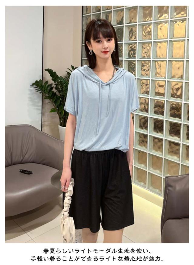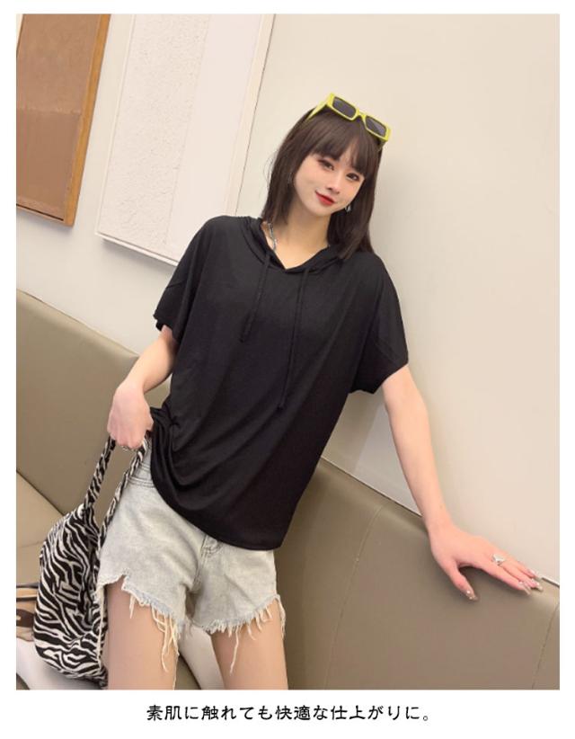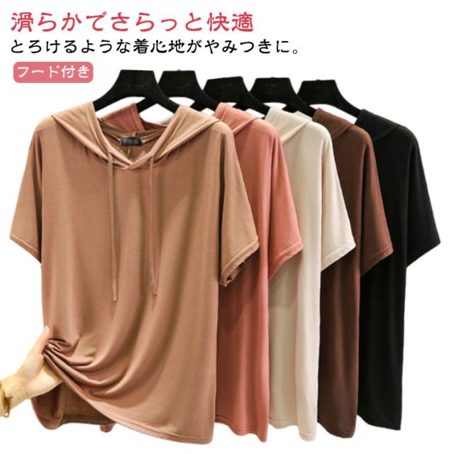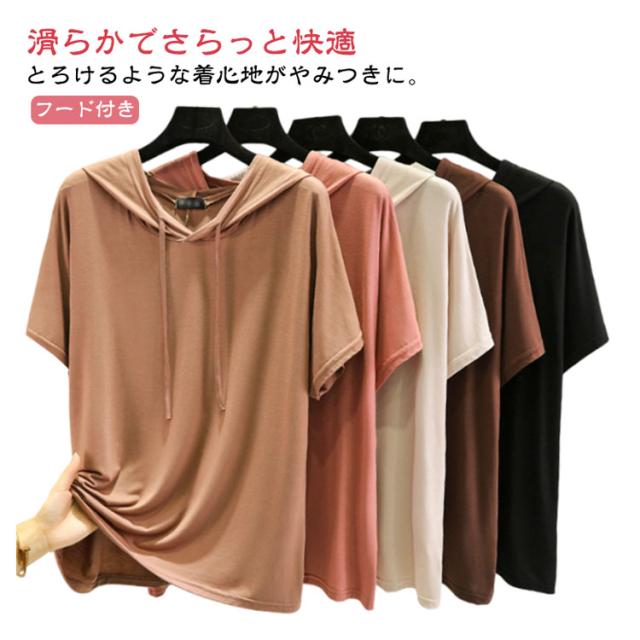 送料無料 半袖パーカー フード付き Tシャツ レディース 半袖 トップス パーカー カットソー 薄い とろみ tシャツ プルオーバー ルームウェア 部屋着 春夏 フーディー トップス 無地 カジュアル