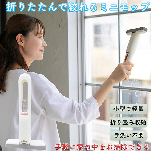 モップ 折りたたんで絞れるミニモップ‐ミニモップ 小型 軽量 キッチン 台所 トイレ 浴室 手洗い不要 折り畳み収納 携帯用小型モップ 片手操作可能 ポータブル 絞り器付き