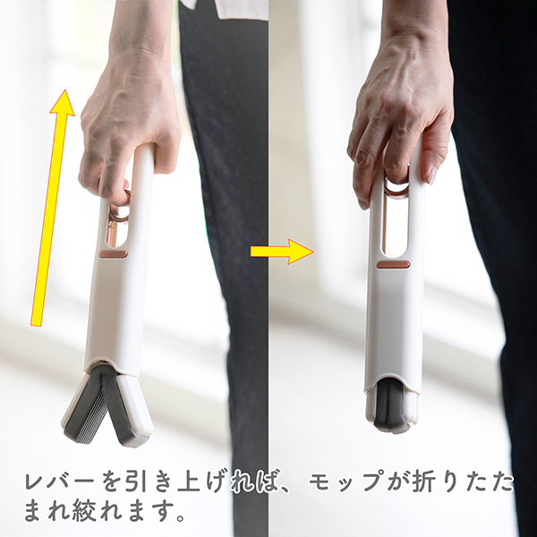 レバーを引き上げれば、モップが折りたたまれ絞れます。