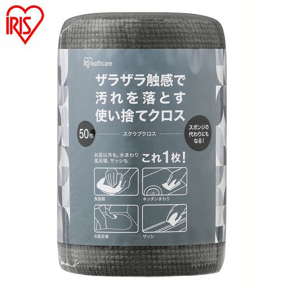 ★レビュー投稿でポイント還元★ 使い捨てスポンジ スクラブクロス 50枚 頑固な汚れ 掃除 コンロ グリル シンク キャンプ アウトドア バーベキュー 風呂 洗剤 使える シートたわし スクラブペーパー スクラブシート キッチンクロス ロール アイリスオーヤマ SC-R50G *