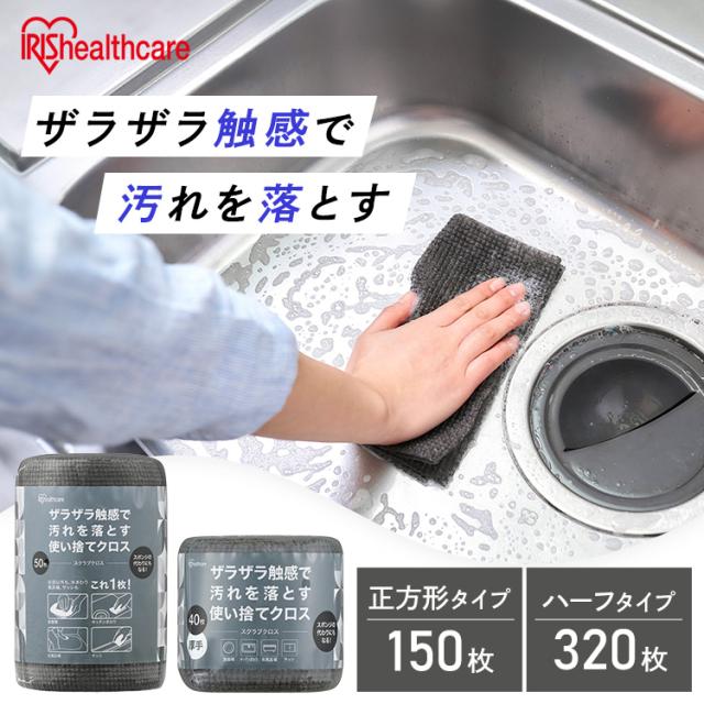 【まとめ買い】 使い捨てスポンジ スクラブクロス ロール 150枚 ボックス 160枚 ハーフ 320枚 頑固な汚れ 掃除 コンロ グリル キャンプ バーベキュー 風呂 シート たわし スクラブペーパー スクラブ アイリスオーヤマ SC-R50G SC-B20W SCH-R40G *