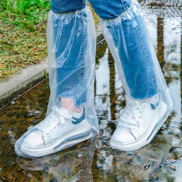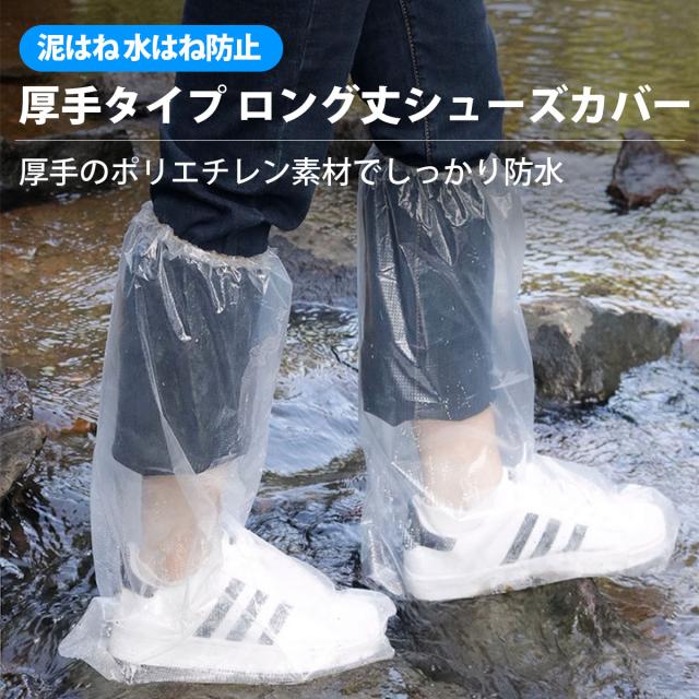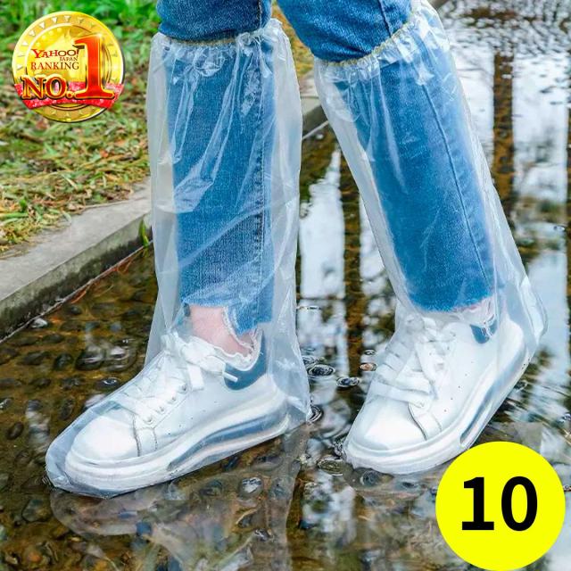 10枚 透明長厚手フリーサイズ シューズカバー 防水 使い捨て 雨 滑り止め ロング バイク 靴カバー 雨用 ポリエチレン 使い捨て靴カバー