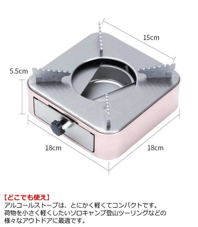 料理用アルコールストーブ コンロ アルコールストーブ 引き出し式 コンパクト 用品 引き出し式 軽量 キャンプ登山 火力調節 新生活 携帯便利 防災 登山 固形燃料 引き出し プレゼント ギフト 贈り物 ピンク シルバー アルコール