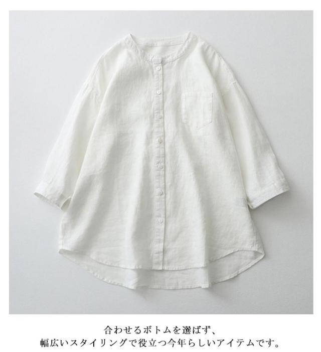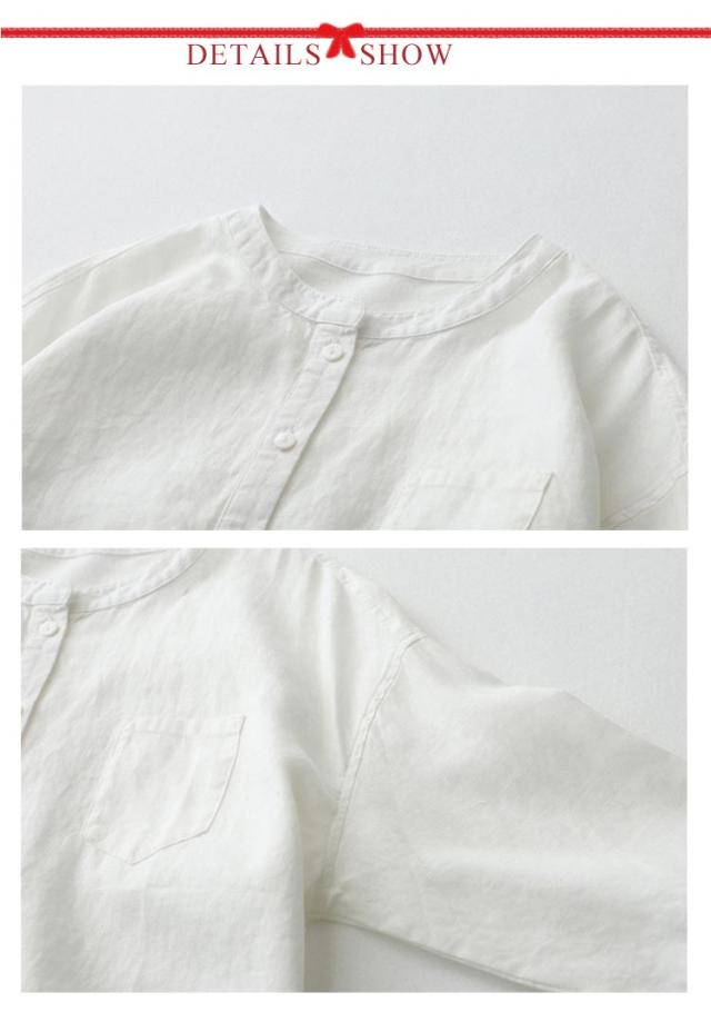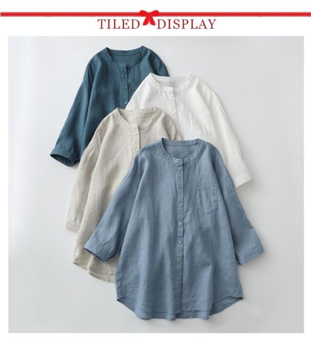 夏 レディース トップス ゆったり ブラウス 七分袖 シャツ レディース カジュアルシャツ 30代 大きサイズ リネン ノーカラーシャツ 40代 母の日 ギフト ラウンド裾
