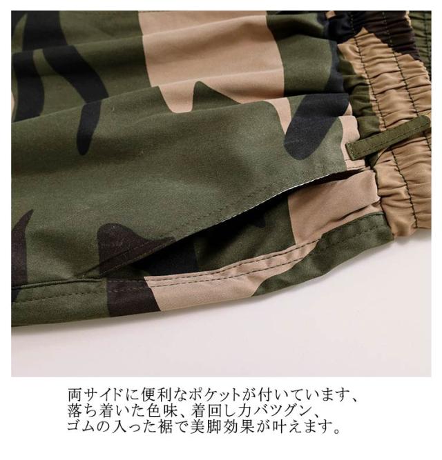 | 柔らかい肌触りの素材にカモフラージュ柄を落とし込んだジョガーパンツです。 裾リブのジョガーパンツデザインはスタイリッシュな着こなしを演出してくれます。 ウエストゴムで、はき心地も快適、着脱しやすい仕様に! ゆったりしたデザインなので、窮屈感が全然なくて、着心地がいいです。 両サイドに便利なポケットが付いています、落ち着いた色味、着回し力バツグン、ゴムの入った裾で美脚効果が叶えます。 春夏秋ロングシーズンに大活躍し、ルームウェア、野外活動、レジャー、ストリートモードなどのリラックスシーンにも最適なアイテムです。 | |