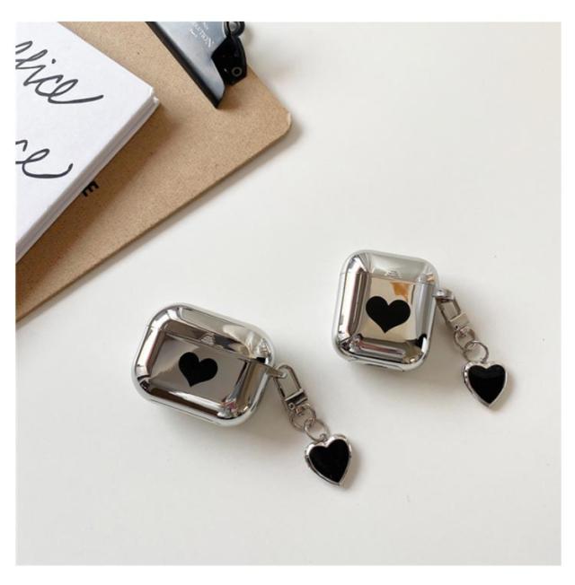 ハード AirPods ケース AirPods AirPods 1/2ケース AirPods1 ケース Pro AirPods3 カラビナ付 落下防止 耐衝撃 カバー 着脱簡単 第2世代 AirPods2 防水 Proケース かわいい おしゃれ ハート メタリック シルバー チャーム 温度変化 第1世代 AirPods