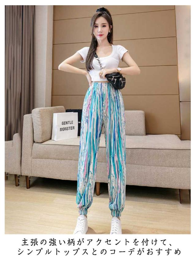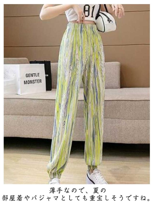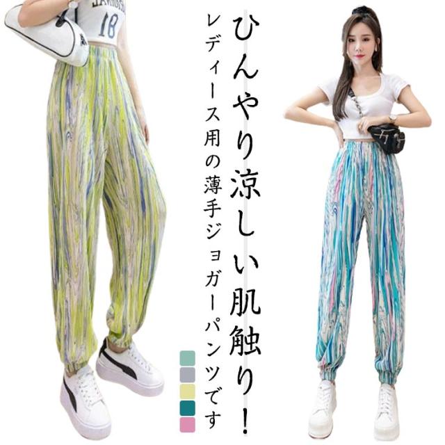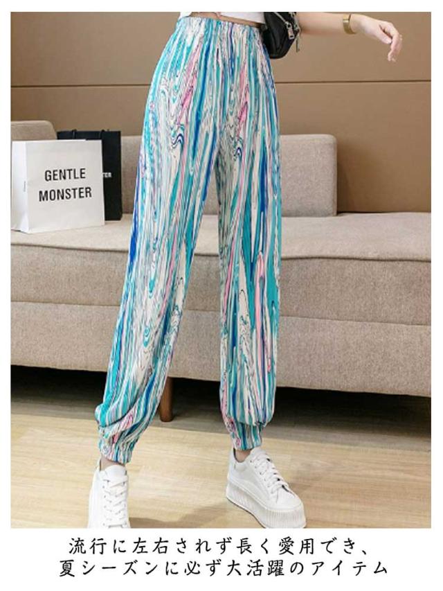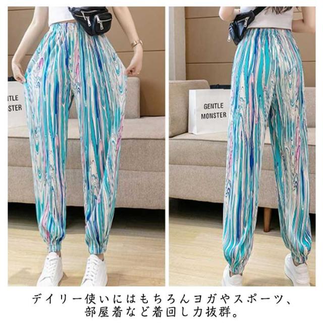 バルーンパンツ 冷感 涼しい ひんやり 薄手 ジョガーパンツ パンツ サルエルパンツ 接触冷感 イージーパンツ ストレッチ 春夏 個性的 総柄 レディース ヨガ ウエストゴム 裾ゴム ダンス 外出 普段着 デイリー ボトムス