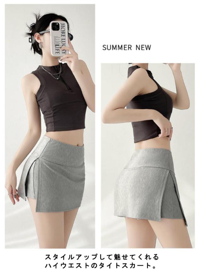 | カジュアルにもキレイめにもキマるタイトスカートが新登場。 インナーパンツと一体型デザインなので、アクティブに動いても安心。フィットネスやテニス、ゴルフなどスポーツシーンで活躍! 幅広いウエストゴム仕様で、窮屈感を感じることなくお腹のお肉を隠せるのが嬉しい。 丈は短いけれどショートパンツの裏地付きなので安心して履けるデザインです。 通気性と速乾性に優れた素材を採用することで、汗をかいてもサラッとした着心地を実現。 どんなトップスとも合わせやすいシンプルなデザイン♪洗い替え用に色違いで揃えるのもおすすめ。 | |