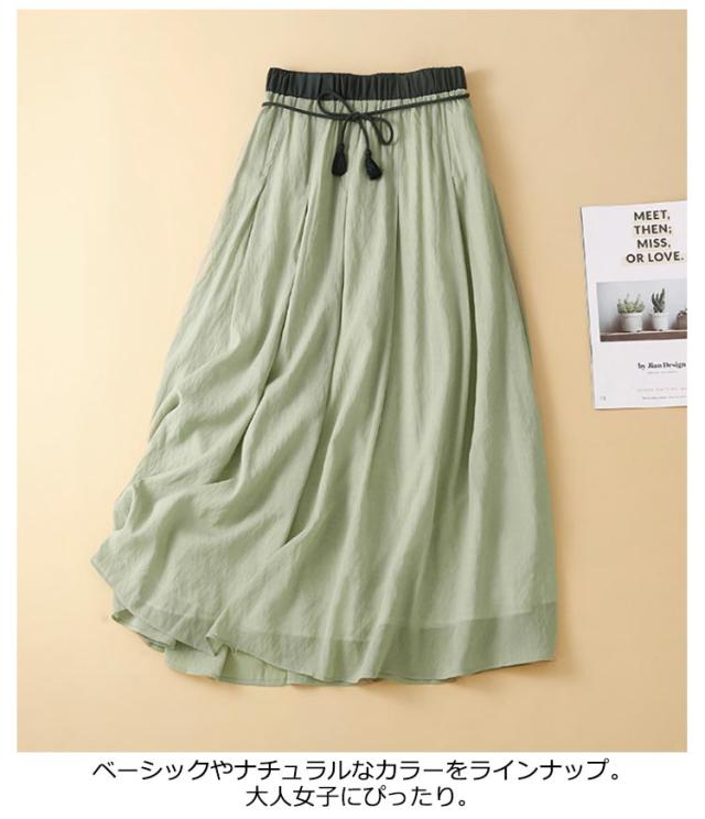 | フェミニンな印象を演出してくれる♪フレアスカートが新登場。 着回し力バツグンのデザインは、デイリーコーデに大活躍! 歩くたびにふわりとゆれるフレアデザインがポイントです。 サラッとした肌触りの裏地付き。すとんと落ちてめくれ上がることなく、快適な着用感! ウエストは総ゴムで、細めのウエストベルトになっており、トップスインした際もきれいに着用いただけます。 裏地付きになっており、着用時も安心です。 落ち着きのあるカラーバリエーション。お手持ちのTシャツやブラウスなどと合わせて、おしゃれにコーディネート♪ | |