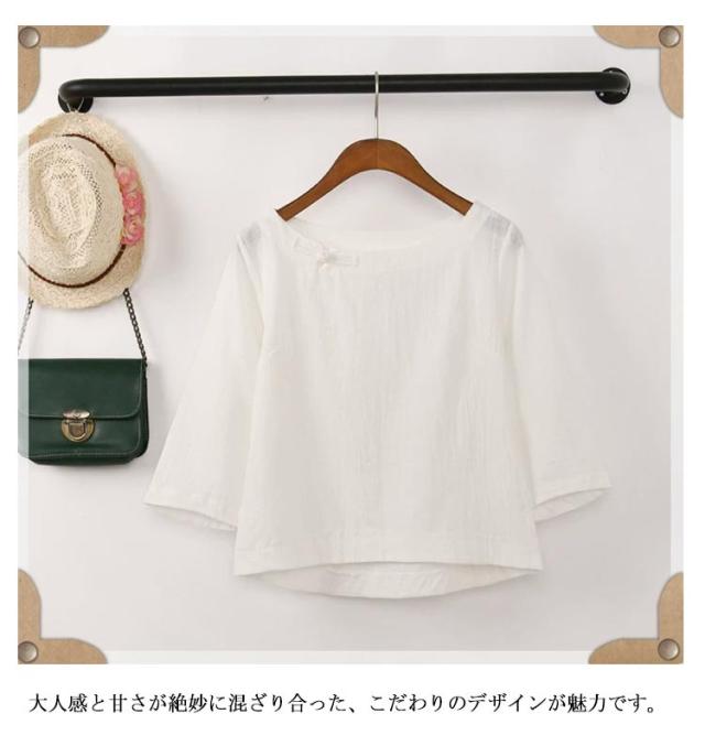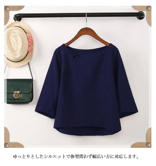 七分袖ブラウス 綿麻 送料無料 リネントップス ショート丈 レディース トップス シャツ ブラウス シンプル ナチュラル コットンリネン ゆったり 春服