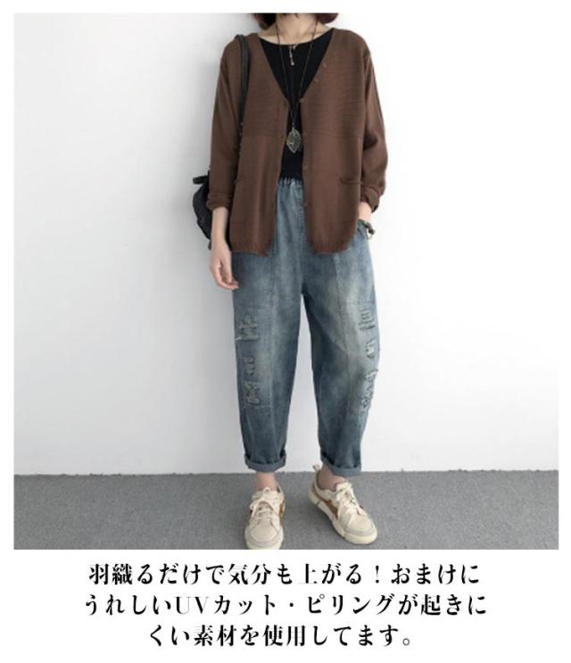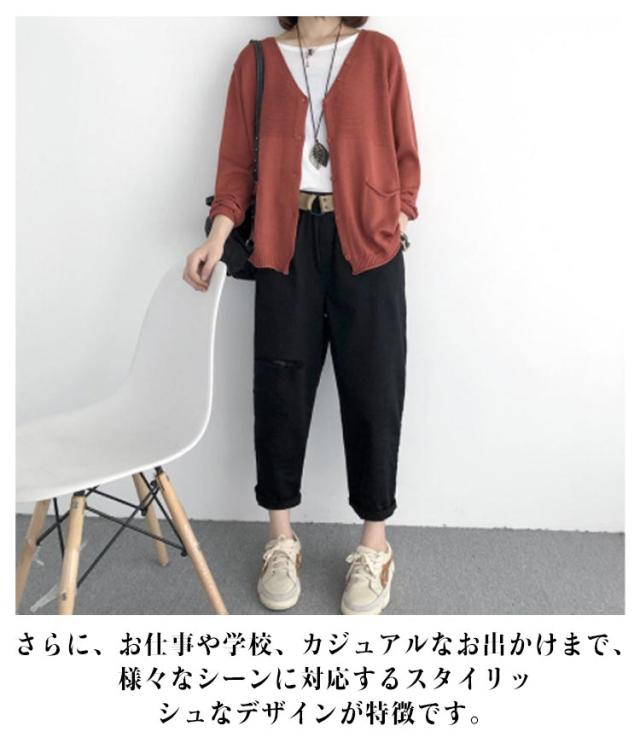 | この時期あると便利なニットカーディガン。 ふんわりとした雰囲気なので大人可愛く着こなせます。 シンプルで着回ししやすいデザインでボトムスを選ばない、程よい丈感。 Vネックデザインは女性らしさを引き立てつつ、ボタン開閉でお好みのスタイルにアレンジ可能。 さらに、お仕事や学校、カジュアルなお出かけまで、様々なシーンに対応するスタイリッシュなデザインが特徴です。 学生やビジネスウーマン、カジュアルなファッションが好きな方まで、幅広い層に喜ばれることでしょう。 羽織るだけで気分も上がる!おまけにうれしいUVカット・ピリングが起きにくい素材を使用してます。 1枚あると便利なカーディガンをぜひお試し下さい。 | |