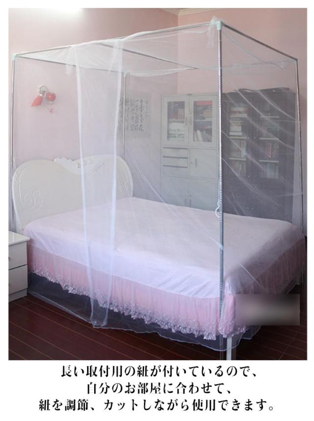 | 細めのメッシュ生地でできた屋外用蚊帳モスキートネットです。 細かいメッシュ仕様なので通気性抜群 、蚊や蛾などの羽虫の侵入をブロック。 中央部に入口があり、出入りも簡単。 普通の蚊帳に比べて、目が細かく、蚊などの侵入を防ぎやすくなっております。 長い取付用の紐が付いているので、自分のお部屋に合わせて、紐を調節、カットしながら使用できます。 折りたたんで持ち運び楽々。キャンプやBBQ、ピクニック、ハイキング、天体観測など様々なアウトドア活動に大活躍。 | |