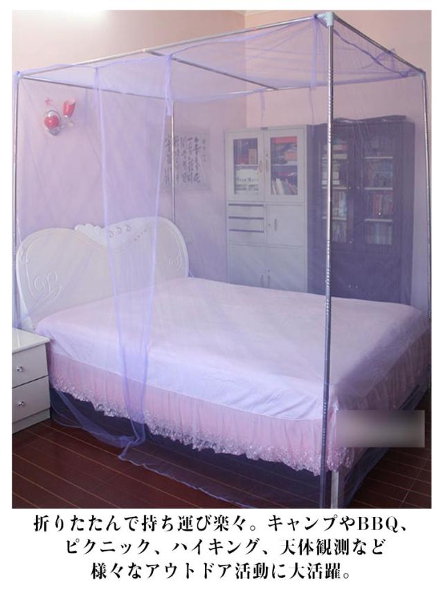 モスキートネット 虫よけ 蚊の対策 キャンプ 蚊帳 紐付き かや 蚊帳 虫除け 吊り下げ メッシュ 屋外 アウトドア 虫よけ 蚊・コバエなどの害虫 節電に 虫の侵入を防ぐ 蚊の対策 コンパクト 安眠 子供 赤ちゃん ホワイト パープル 吊り下げ用