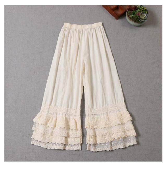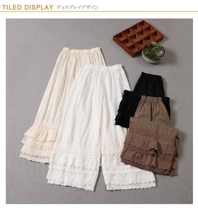 フリルレース ワンピ 【新作登場!】ペチパンツ ペチパンツ 綺麗 重ね着 ロング ロング 森ガール インナー スカート 刺繍 下 スカラップレース 綿 レース レディース コットン 重ね着 透け感 ペチコート ガウチョ パンツ 白 ペチコートパンツ