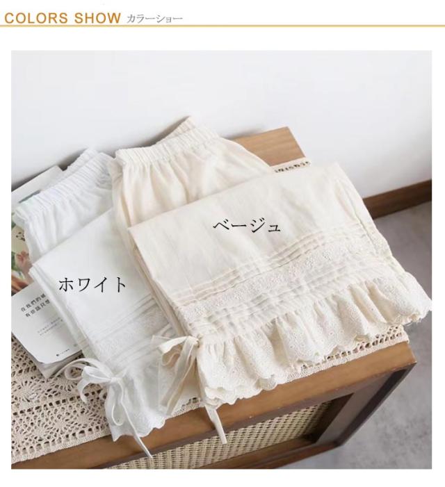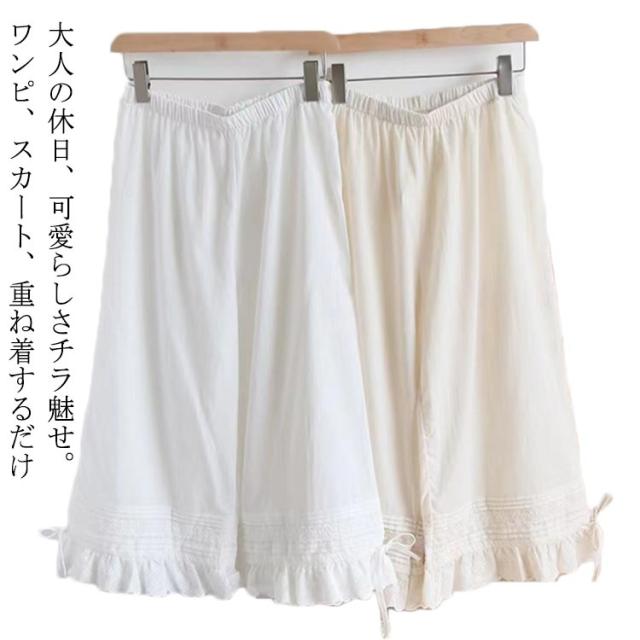 刺繍レースのタップパンツ ペチパンツ コットン ペチパン インナー ペチ パンツ フレアパンツ 重ね着 パンツインナー パンツ 透け防止 シ 下着 体型カバー ウエストゴム コットン 白 春 ペチコートパンツ