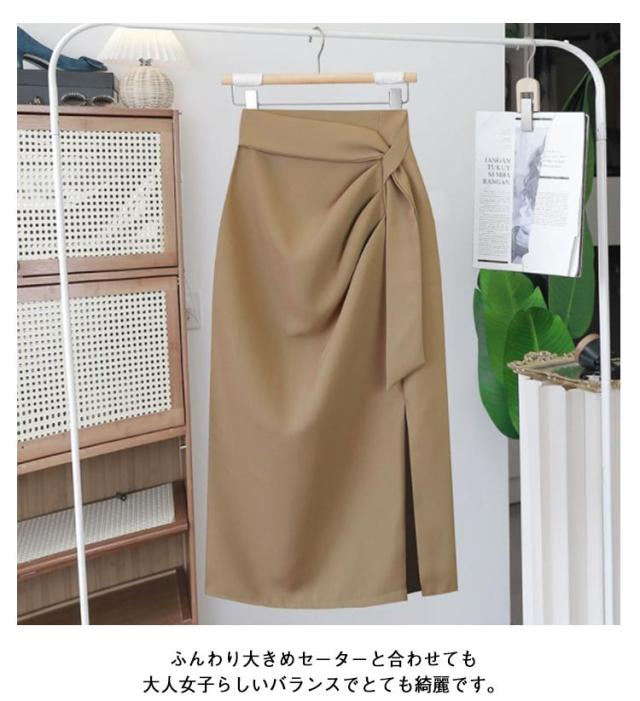 洗える 夏 スカート ギャザー入り タイト タイトスカート 春 仕事用 タイトスカート 通勤 事務 膝丈 面接 ハイウエスト ミモレ丈タイトスカート スリット オフィス フォマール きれいめ 30代 40代 50代 着やせ M L XL アシンメトリー