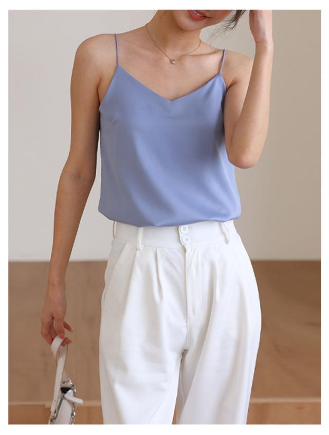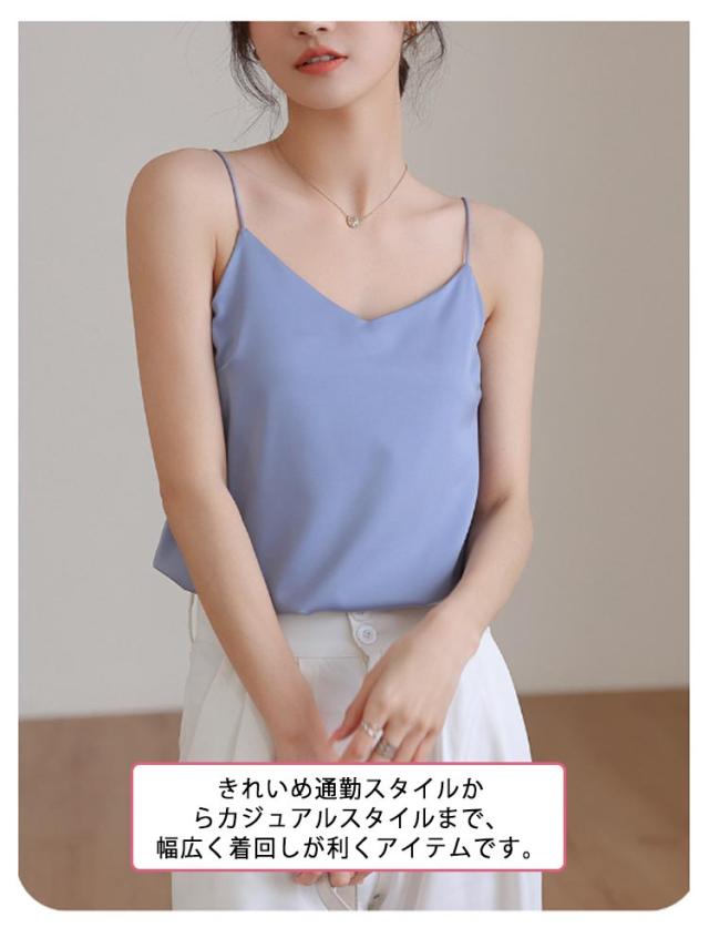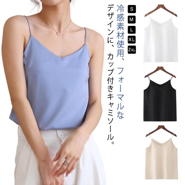 レディース スーツインナー カップ付き 着回し おしゃれ インナー タッチ Vネック トップス ノースリーブ シンプル 夏 L キャミソール サテン 大人カジュアル おしゃれ 通勤 フォーマル アイスシルク S M XL 春