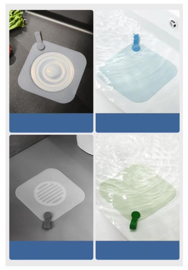| 風呂場、浴槽、シンク洗い場、台所などの排水口に対応可能な水張りカバー。 取っ手が付いているため、 ゴミに直接触れることなく捨てられる。 柔軟で耐水性の高い素材で作られていますが、汚れたら洗うだけで再利用できます。 | |
