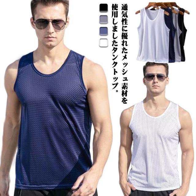 タンクトップ 速乾 スポーツ トレニンーグ タンクトップ 薄手 3XL Uネック XL フィット 下着 メッシュ タンクトップ タンク 吸汗 接触冷感 ストレッチ 肌着 大きいサイズ L メンズ 2XL メッシュ 黒 白 グレー 筋トレ
