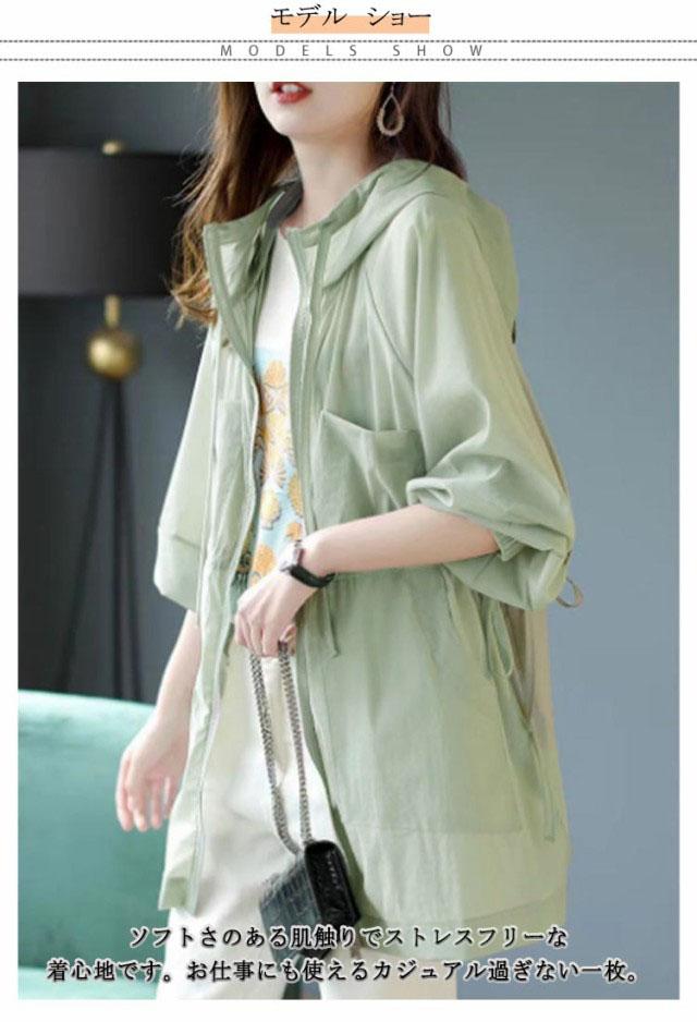 マウンテン UV対策 ライトアウター パーカー マウンテンパーカー 薄手 日よけ対策 レディース ブルゾン フード付き パーカー アウター アウトドア パーカー ジャケット ミリタリージャケット グリーン 体型カバー 日焼け対策
