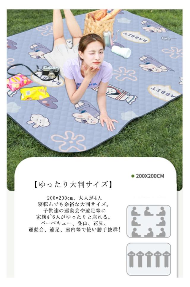 | 可愛くておしゃれで機能的なレジャーシート 200×200cm 洗濯機で丸洗い 3層構造の厚手シードなので、座っていても痛くなりづらい!! 【三層構造】 三層構造で作られ、表面は吸湿性低いポリエステルで防しわ性と乾きやすい特性があり、サラサラとした手触りで気持ち良い。 中材は厚さ3mm中綿、座り心地が良くて、長時間座っても、お尻や太ももが痒く、痛くなりにくい。 裏面は防水や断熱素材であるPEVAで、地面から湿気を防ぎながら、砂や汚れにも強い。 【ゆったり大判サイズ】 200*200cm、大人が4人寝転んでも余裕な大判サイズ。子供達の運動会や遠足等に家族4~6人がゆったりと座れる。バーベキュー、登山、花見、運動会、遠足、室内等で使い勝手抜群! 【超音波圧着&洗濯機で丸洗い可能】 生地と生地を縫い合わせずに超音波の力で圧着したので、糸切れ等の心配を要りません。簡単にふき取りで取れない汚れは洗濯機で丸洗いにも可能です。 【持ち運びはバッグ型でコンパクト】 マジックテープでとめてコンパクトに収納☆取っ手付きだから持ち運びも便利 | |