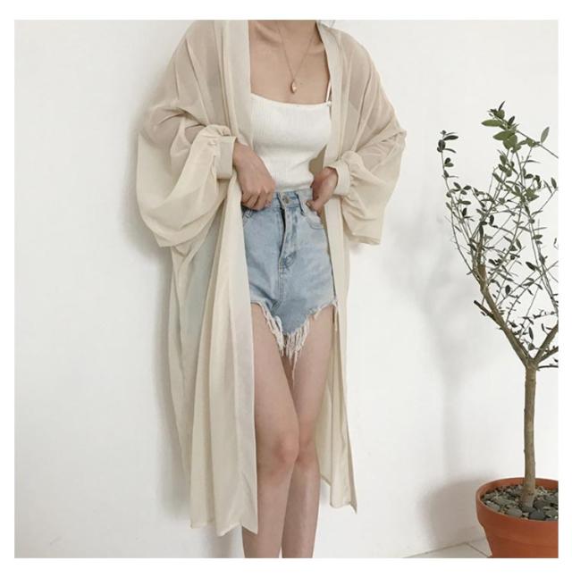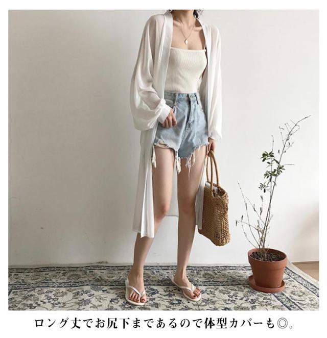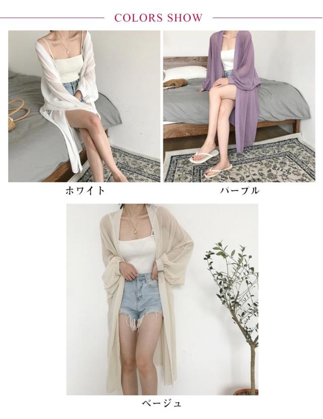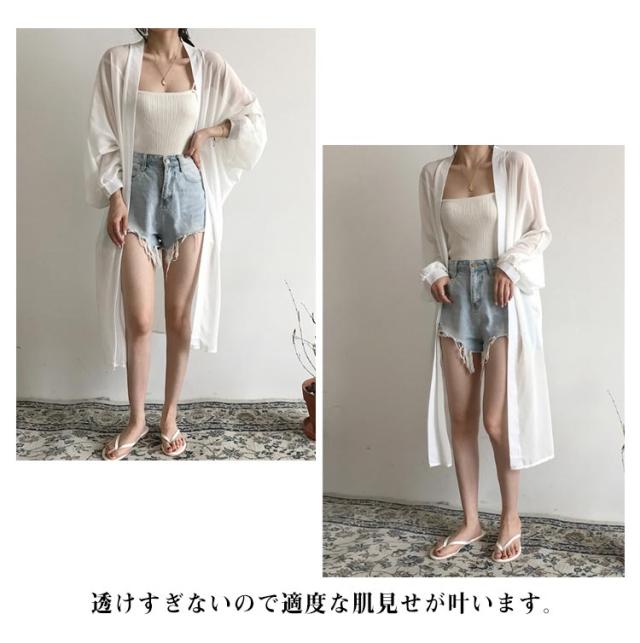 シフォン カーディガン レデイース ロングカーディガン 春 夏 長袖 ロング丈 ニットカーディガン 羽織り シースルー 透け感 薄手 UVカット 軽量 紫外線対策 シンプル 冷房対策 UV対策 サマーカーディガン