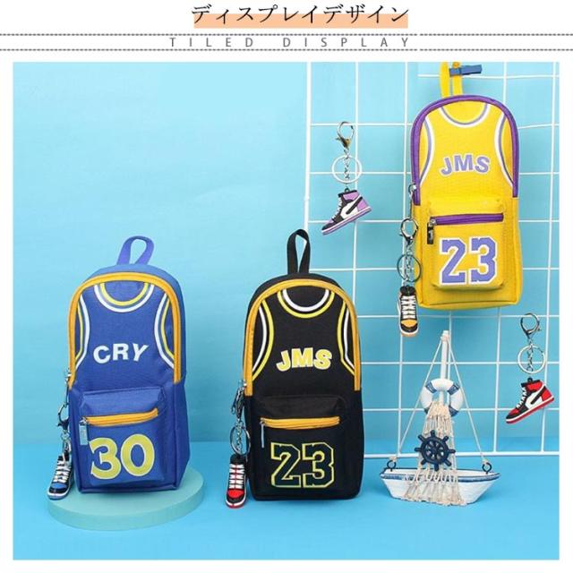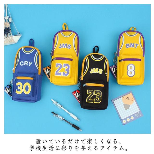 バスケ グッズ ペンポーチ 男の子 大容量 ペンケース ファスナー ポーチ 小物入れ おもしろ ふでばこ 筆箱 カラビナ付 キャンバス 縦型 ファスナー ポケット 持ち手 チャーム おしゃれ バスケットボール ユニフォーム