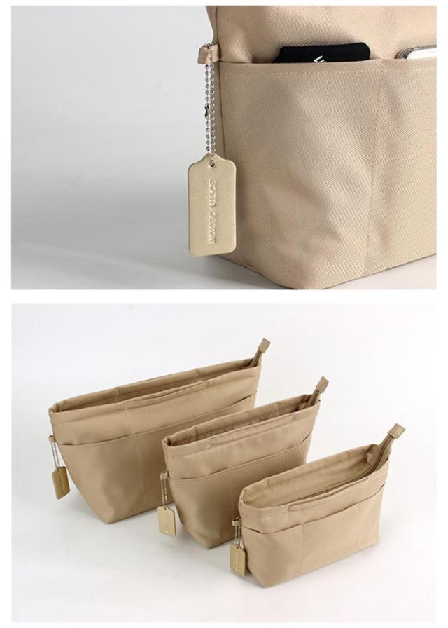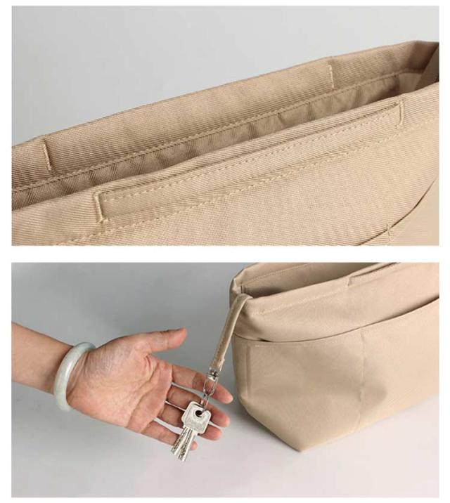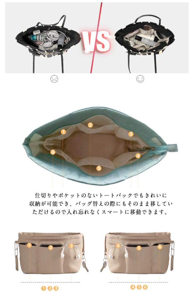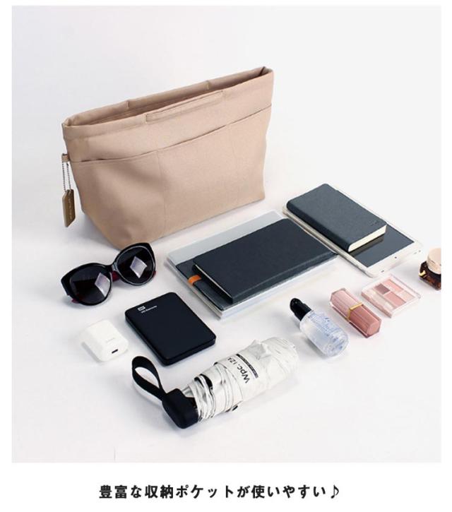 | ・バッグの中の整理に、持ち歩けるインナーバッグ ・豊富な収納ポケットが使いやすい♪ ・仕切りやポケットのないトートバックでもきれいに収納が可能でき、バッグ替えの際にもそのまま移していただけるので入れ忘れなくスマートに移動できます。 ・シンプルなデザインなので男女どちらでもお使いいただけます。 | |