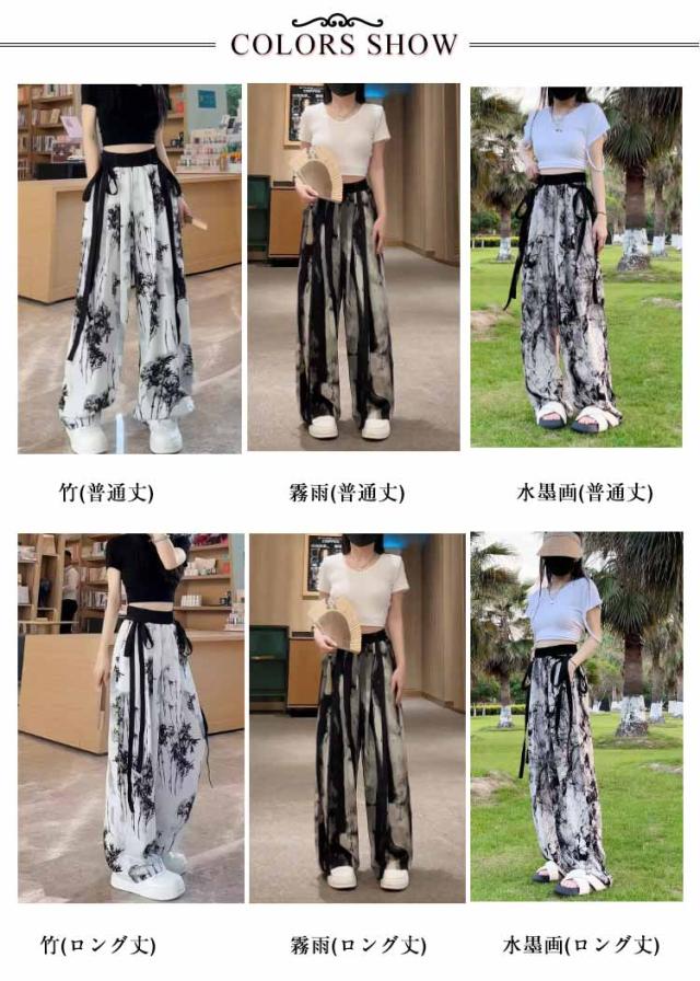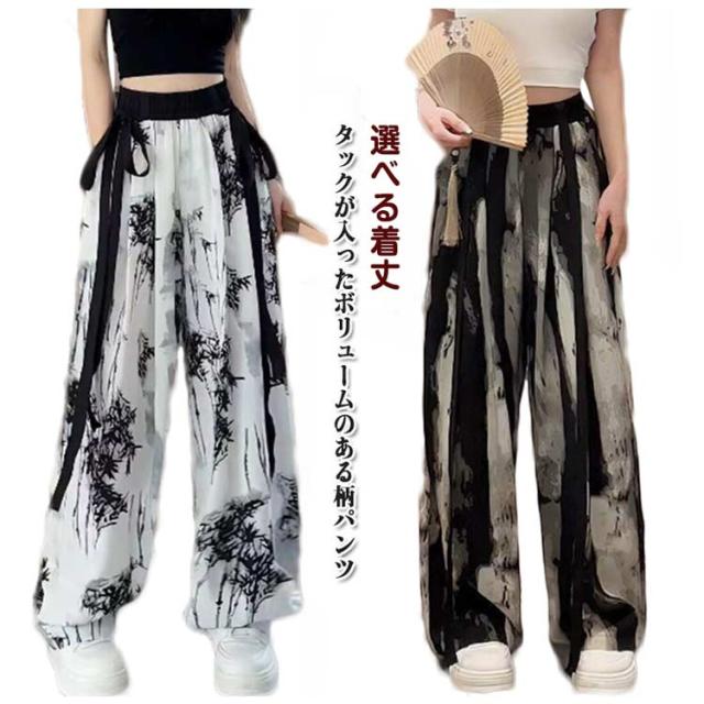 柄パンツ ガウチョパンツ 涼しい ワイドパンツ レディース 柄 ボトムス ストレートパンツ ロング丈 ポケットあり 楽ちん おしゃれ きれいめ リラックス リゾート 女子 脚長効果 選べる着丈 個性的 エスニックファッション アジアンファッション