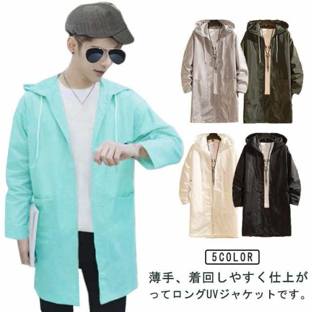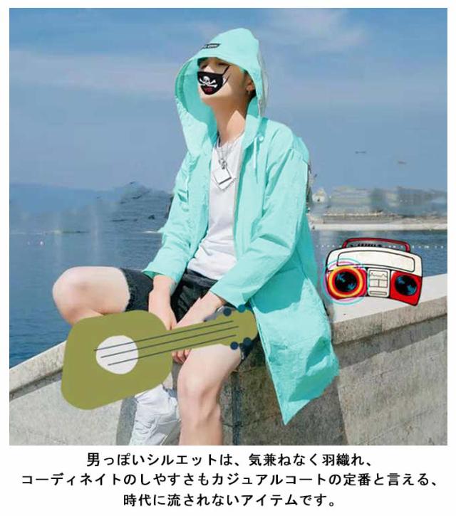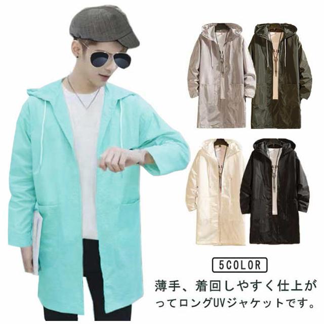 UV ジャケット ロングジャケット メンズ サマージャケット マウンテンパーカー 薄手 UVパーカー フード付き ライトアウター 軽量 ジャンパー 長袖 紫外線カット UVカット 冷房対策 羽織り アウトドア S M L XL 2XL 3XL