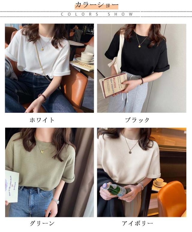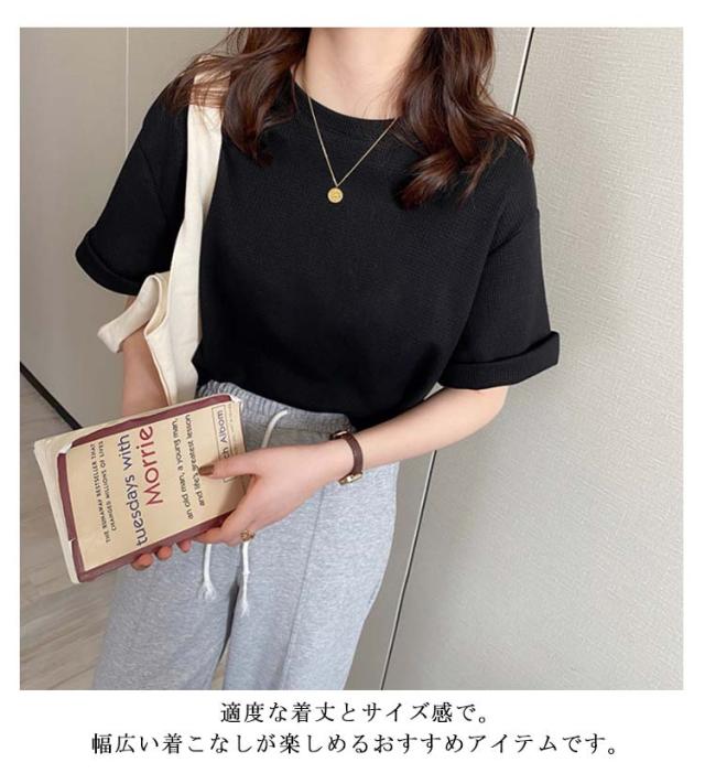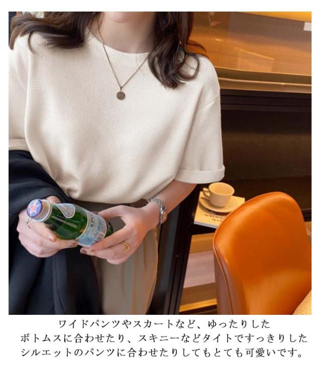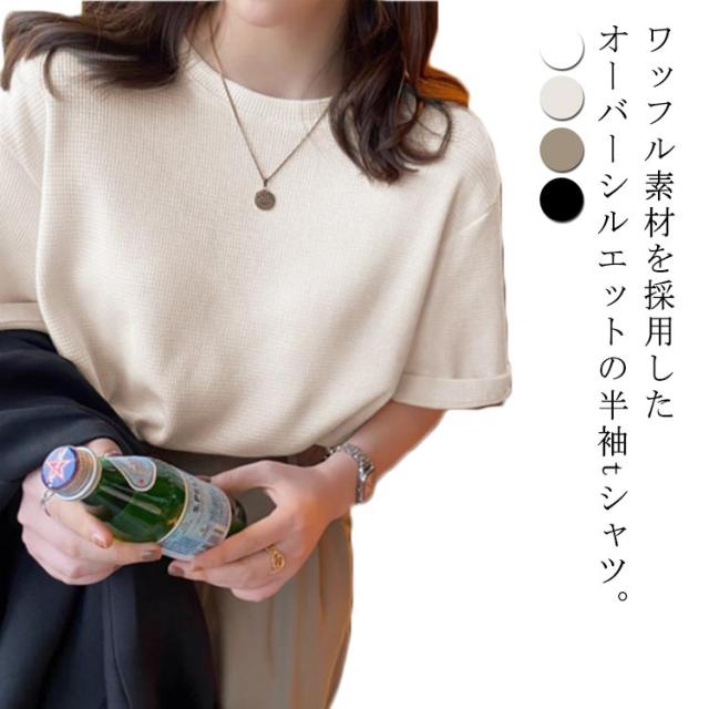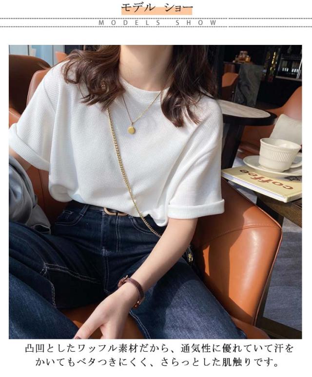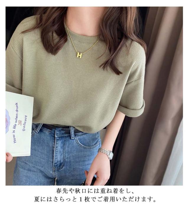 ワッフル Tシャツ レディース ワッフルTシャツ サーマtシャツ 半袖tシャツ ロンT カットソー ドルマン Tシャツ ドロップショルダー ゆったり 春 夏 プルオーバー ワッフルカットソー ホワイト グリーン ブラック アイボリー