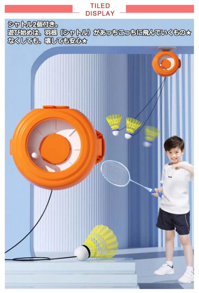 | 屋内と屋外の両方の使用に適しており、いつでもどこでも練習することができる。 シャトル3個付き。遊び始めは、羽根(シャトル)があっちこっちに飛んでいくもの★なくしても、壊しても安心★ ショートサイズのため子どもでも扱いやすく、当たりやすい設計。 調節可能なコードの長さを備えたリバウンドトレーナーでトレーニングを強化する。 気軽にバドミントンを楽しめる。 | |