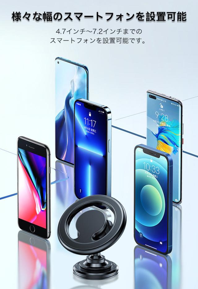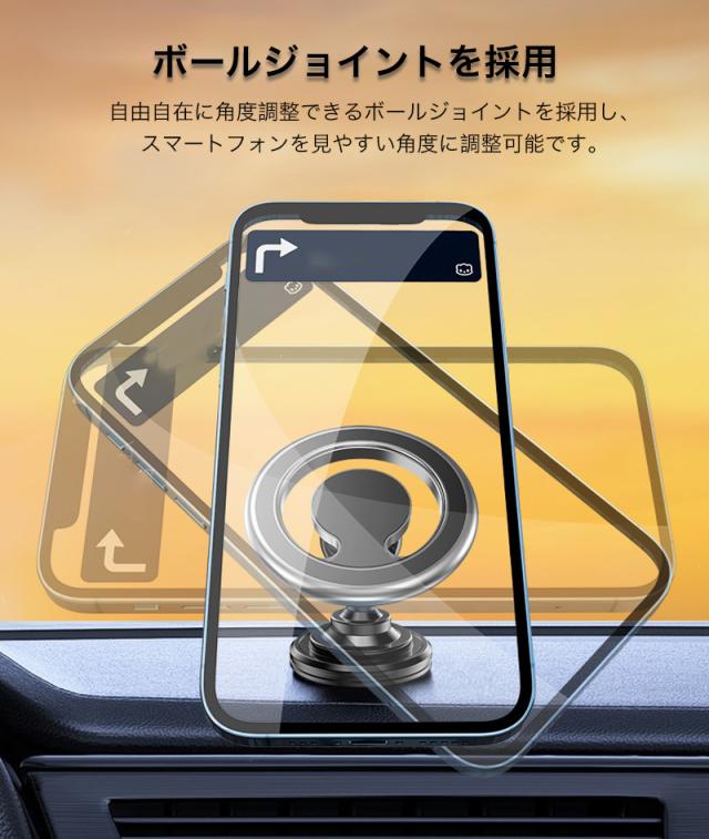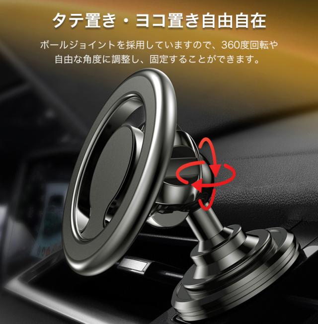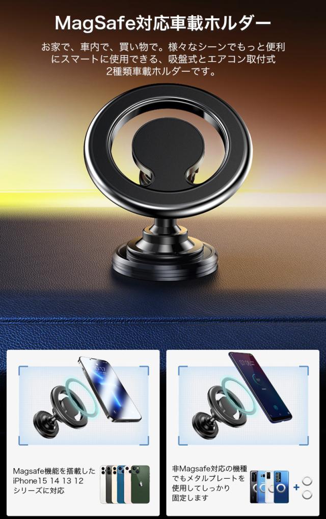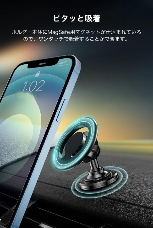 スマホホルダー MagSafe対応 車載ホルダー マグネット 角度調整 スマートフォン スタンド エアコン取付式 粘着テープ シンプル 高級感 電波干渉を抑える