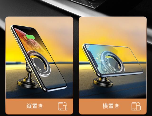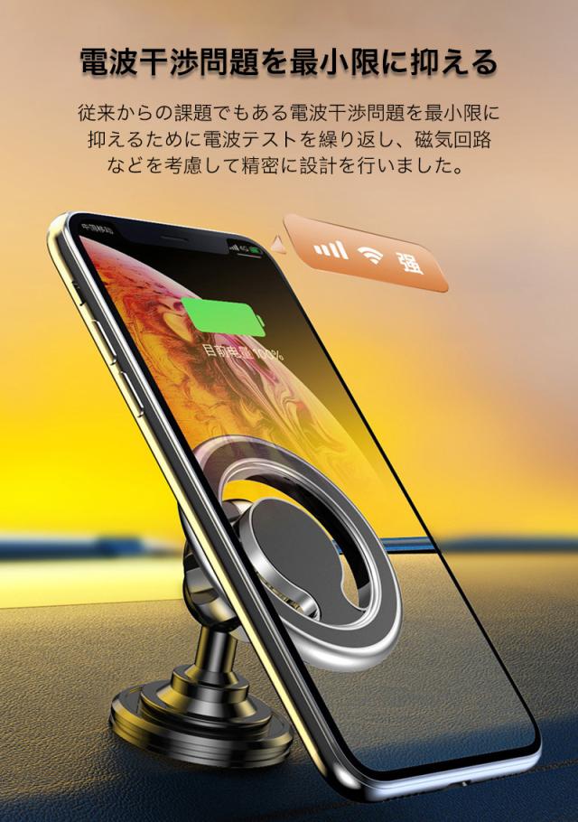 車載ホルダー マグネット スマホホルダー 折りたたみ式 360度回転 角度調整 スマートフォン スタンド 強力粘着テープ メタルプレート付き シンプル 高級感 電波干渉を抑える 車内 家 卓上 机 壁