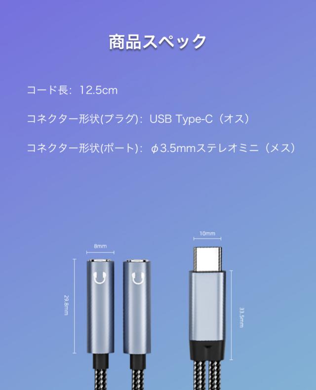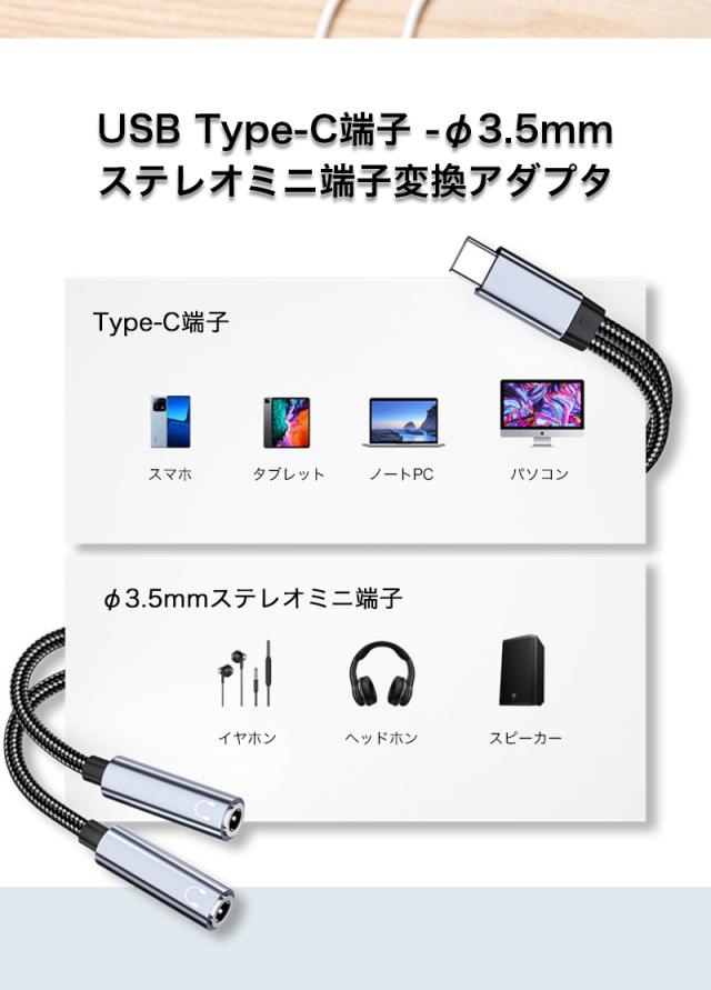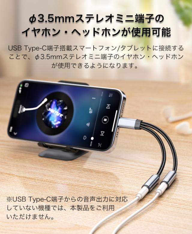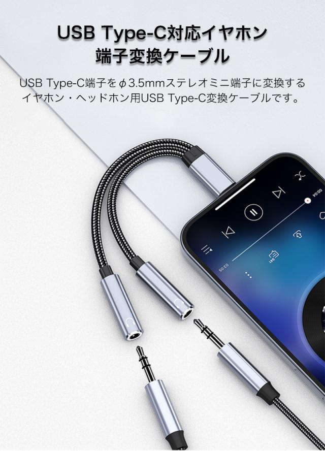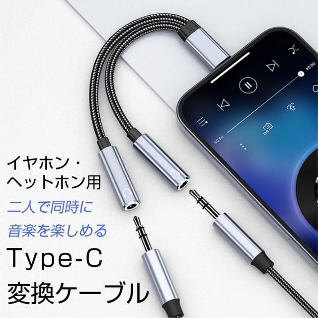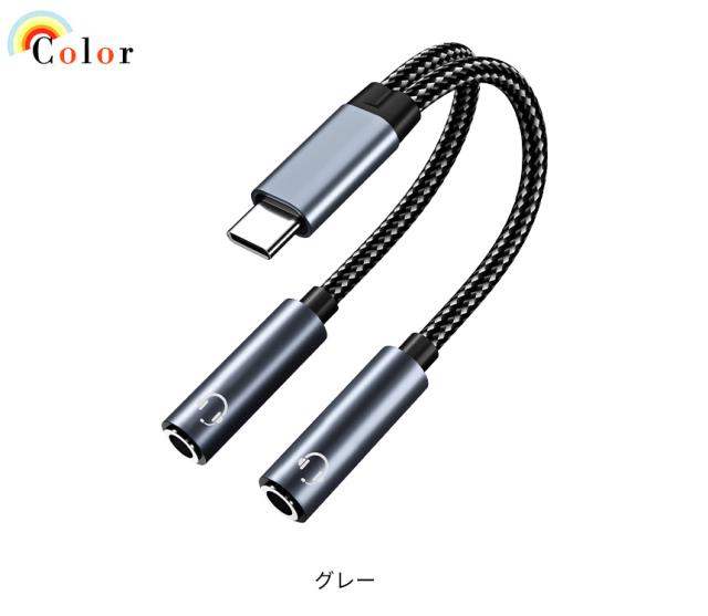 変換アダプタ Type-Cオス - 3.5mmステレオミニ端子メス 変換ケーブル 分岐ケーブル スマホ タブレット 二股イヤホン同時対応 2つに分配 シェア コンパクト