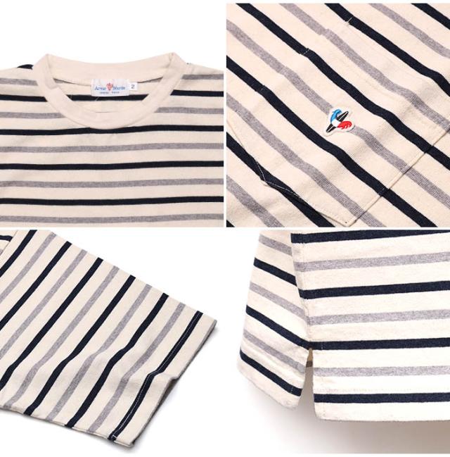 カットソー メンズ ボーダー 半袖 Arvor Maree アルボーマレー 日本製 ブランド Relax BORDER PKT TEE RX-PKT-BO ボーダー シャツ Tシャツ ポケット マリン コットン 綿100% 夏 旅行 プレゼント ギフト ロゴ ネイビー ベージュ