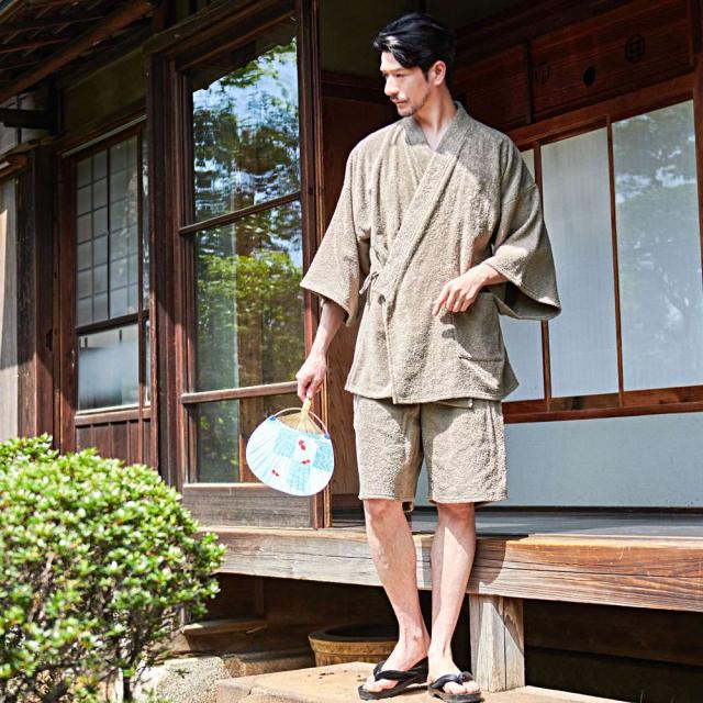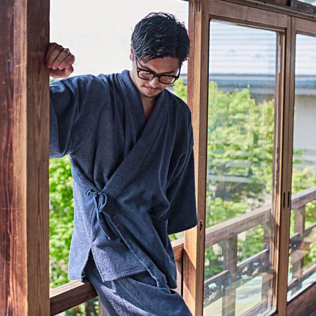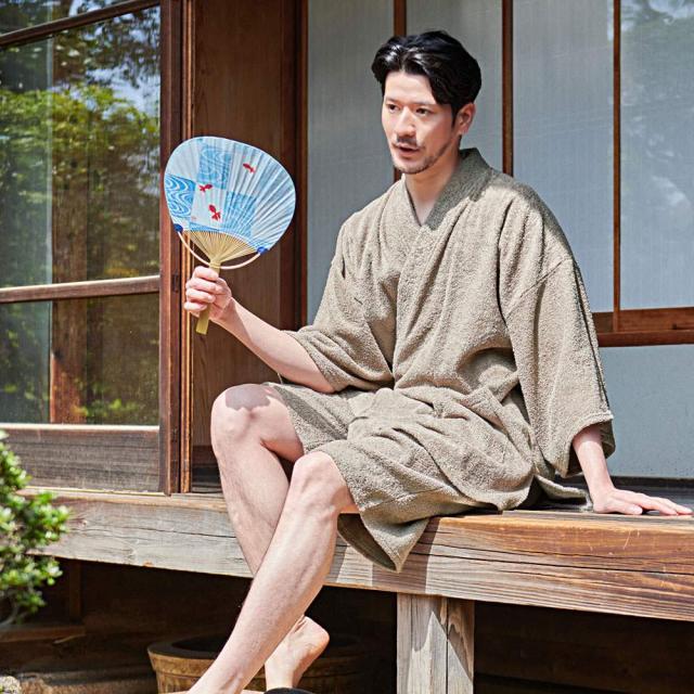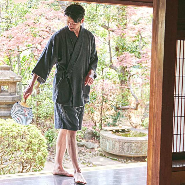ちょっとした普段着(ワンマイルウェア)から、ルームウェア、湯上りのローブ代わりにも自由に使える甚平。