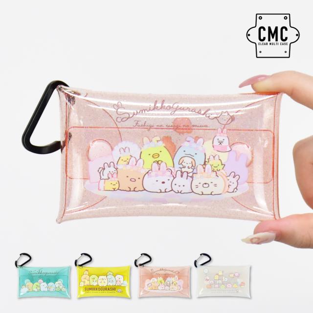 すみっコぐらし クリアマルチケース Sサイズ ラメ 透明 クリア PVC カラビナ パスケース 定期入れ 小物入れ ポーチ レディース メンズ 女子 男子 男女兼用 通勤 通学 旅行 大人 高校生 学生 子供 可愛い かわいい キャラクター グッズ