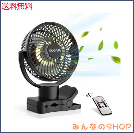 【360度自動首振り・10000mAh 】キャンプ 扇風機 クリップ 卓上 吊り下げ USB充電式 リモコン付き 静音 小型 風量調節可能 LEDライト搭載