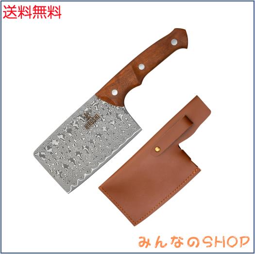 HIROSHI 小型ダマスカス製 肉切り包丁 ミニ中華包丁 小さい菜切り庖丁 錆ない 鋭い 軽い 初心者と女性に最適 レッドローズ木柄 鞘付き ア