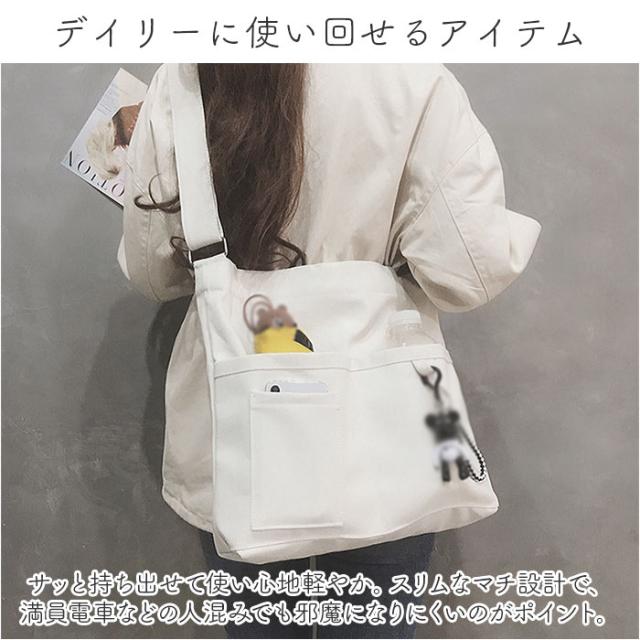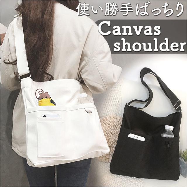 ショルダーバッグ キャンバス 無地 通販 ショルダーバック ショッピングバッグ ショッピングバック ワンショルダー ショルダー ななめかけ 斜め掛け 肩掛け A4 シンプル ポケット