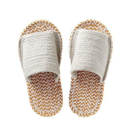 【インド綿を使用】1本のインド綿を丁寧に編み込んだ、ハンドメイドスリッパ。サラッとした履き心地が特徴のインド綿とリサイクル糸を使用。コットン素材が癖になる気持ちよさで、素材の良さを実感。手洗いも可能なので清潔さを保てます。素足で履くのが気持ちいい、夏にぴったりの室内用コットンサンダルです。気持ちよさと軽やかさを足元に。