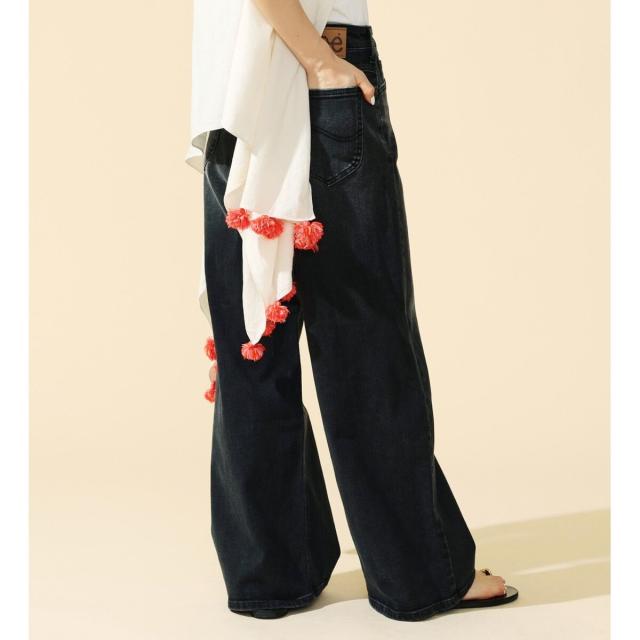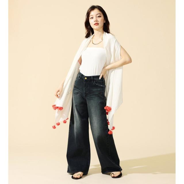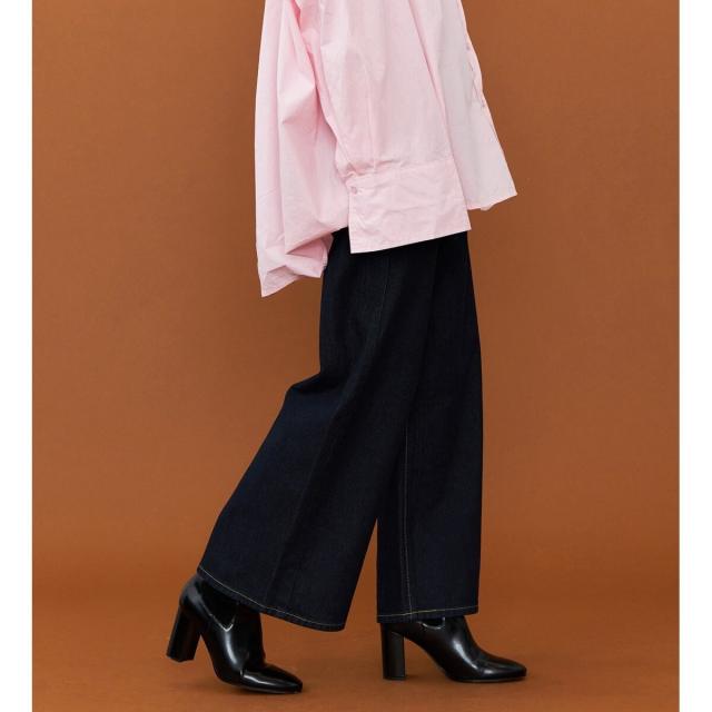 腰回りはややスッキリさせ、渡りから裾に向かってワイドなトレンドのシルエットです。