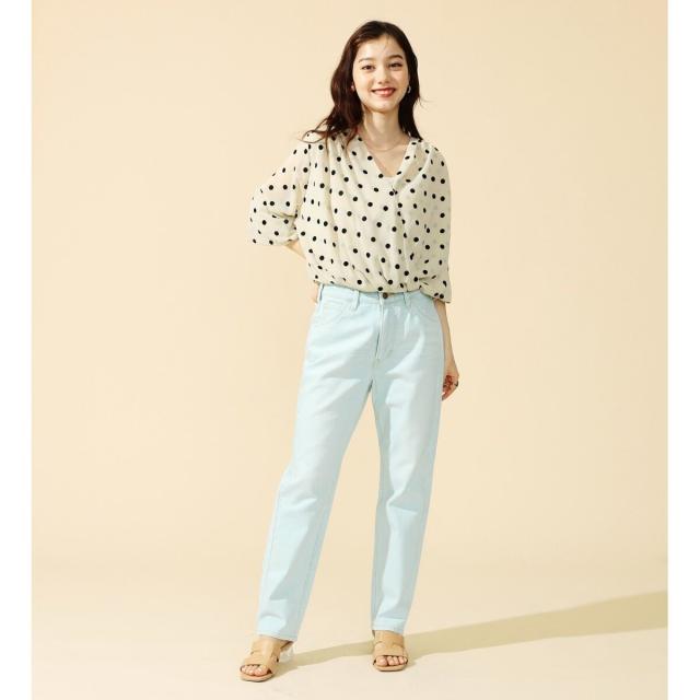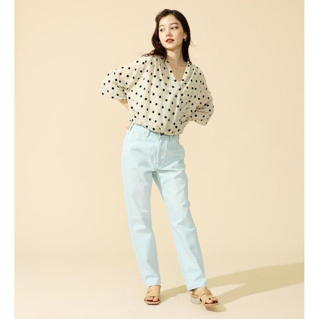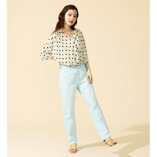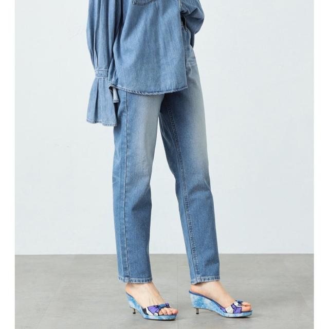 通常のスキニーよりも足の形を拾わず、足首が出る設定にしており、すっきりとしたレングスが抜け感を演出しています。