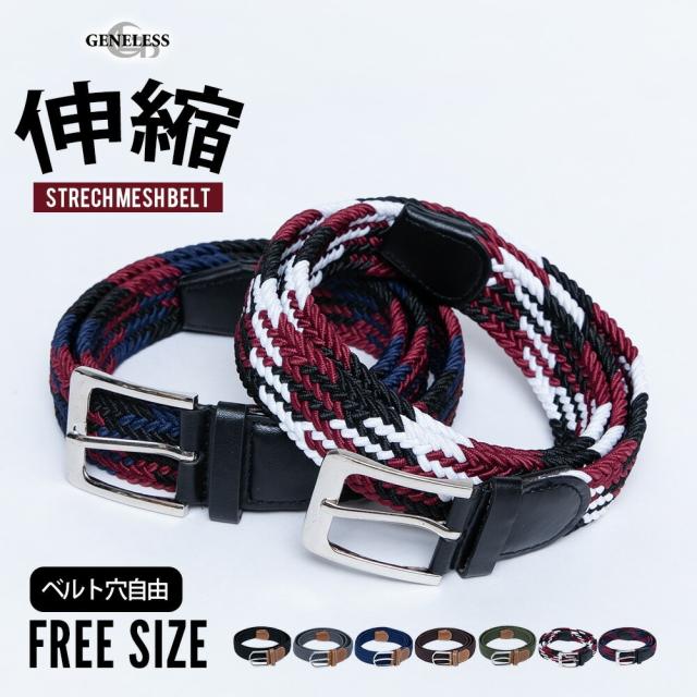 ジェネレス(geneless)/ベルト メンズ メッシュ 編み込み ゴム ストレッチ メッシュベルト メンズベルト 穴なし 伸びる
